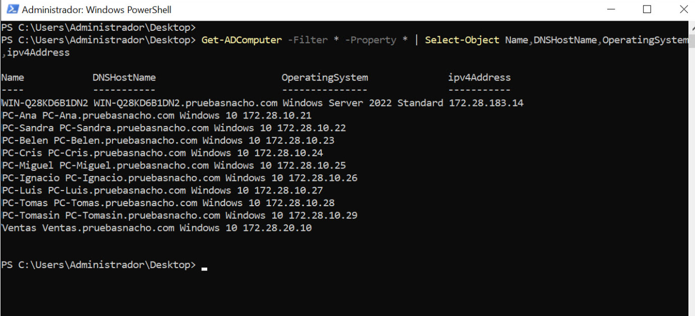 Sobre os computadores registados no domínio, podemos fazer uma consulta para extrair os seus dados e poder listá-los para inventário ou processá-los posteriormente.