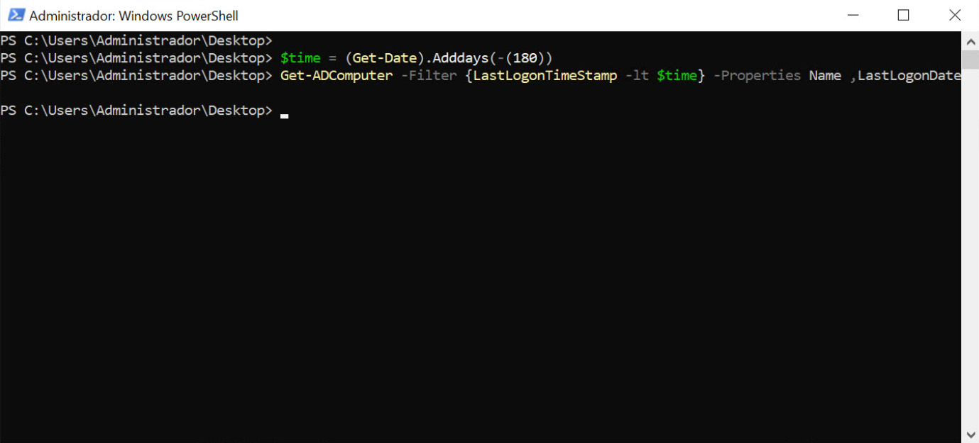 Para detetar estes computadores usaremos o comando «Get-ADComputer«, mas com uma variável na qual o tempo é calculado, de forma semelhante a como calculamos os novos utilizadores do domínio.