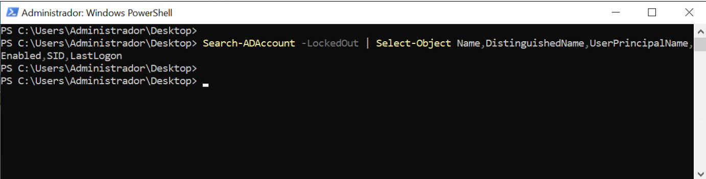 O comando a ser executado é bastante simples e, mais uma vez, é baseado em “Search-ADAccount”.