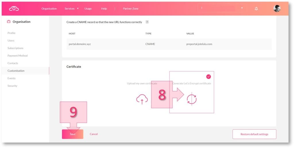 Step 2. Customise the user portal URL using the Let’s Encrypt option