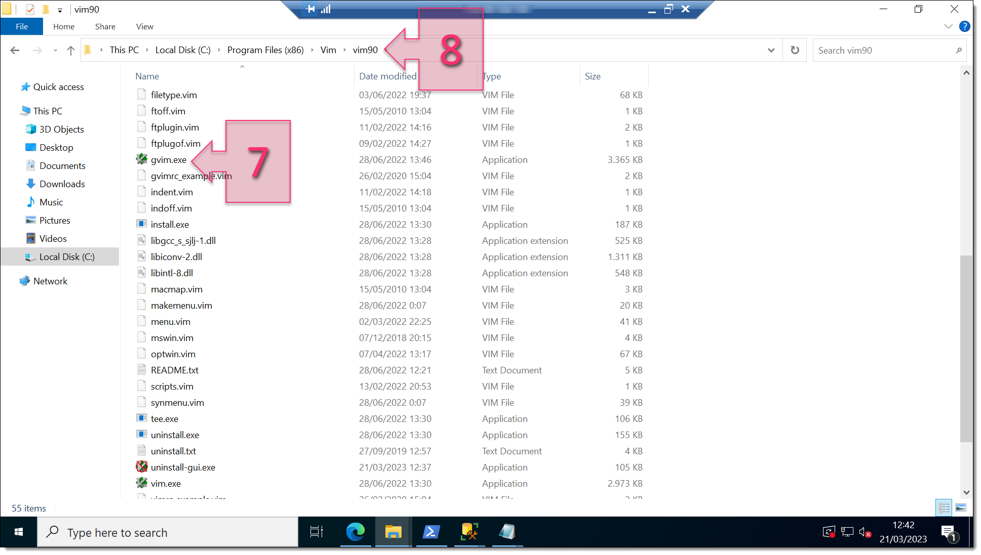 Once you have the correct folder location, browse to the folder and check that you can run the executable file (7). Bear in mind that the executable file will not always be in the application folder (8), and this will be important when configuring the application later.