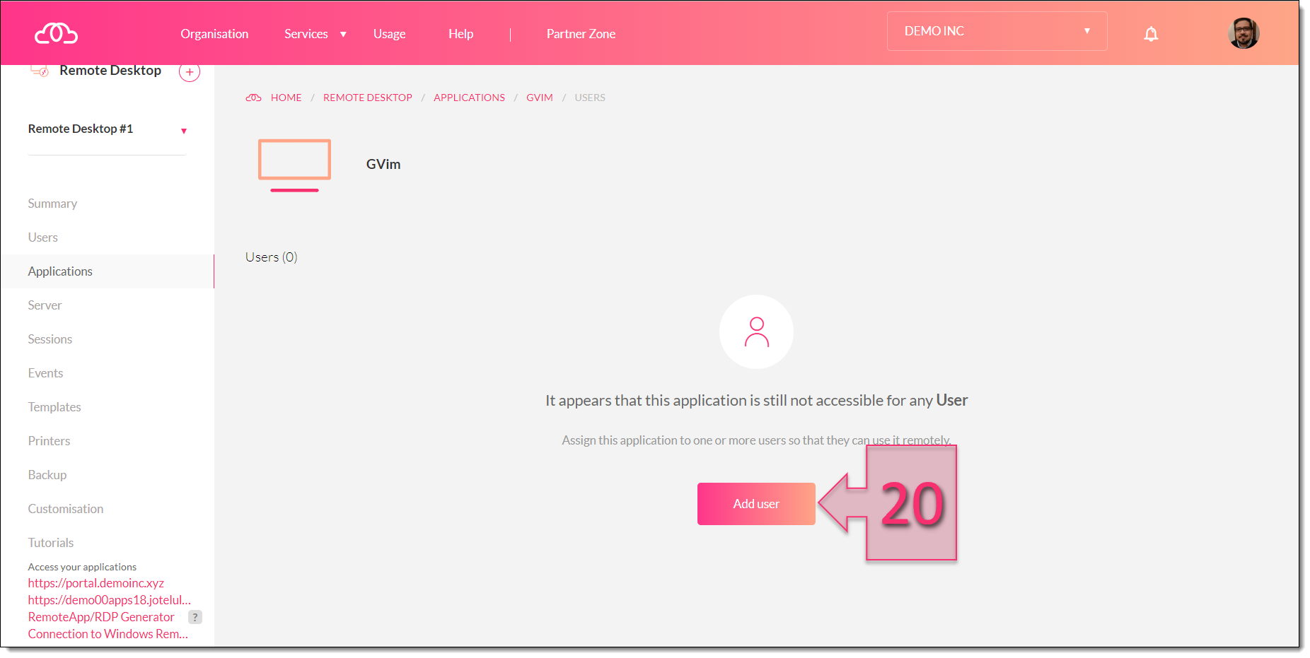 Open the Applications section from the Remote Desktop page