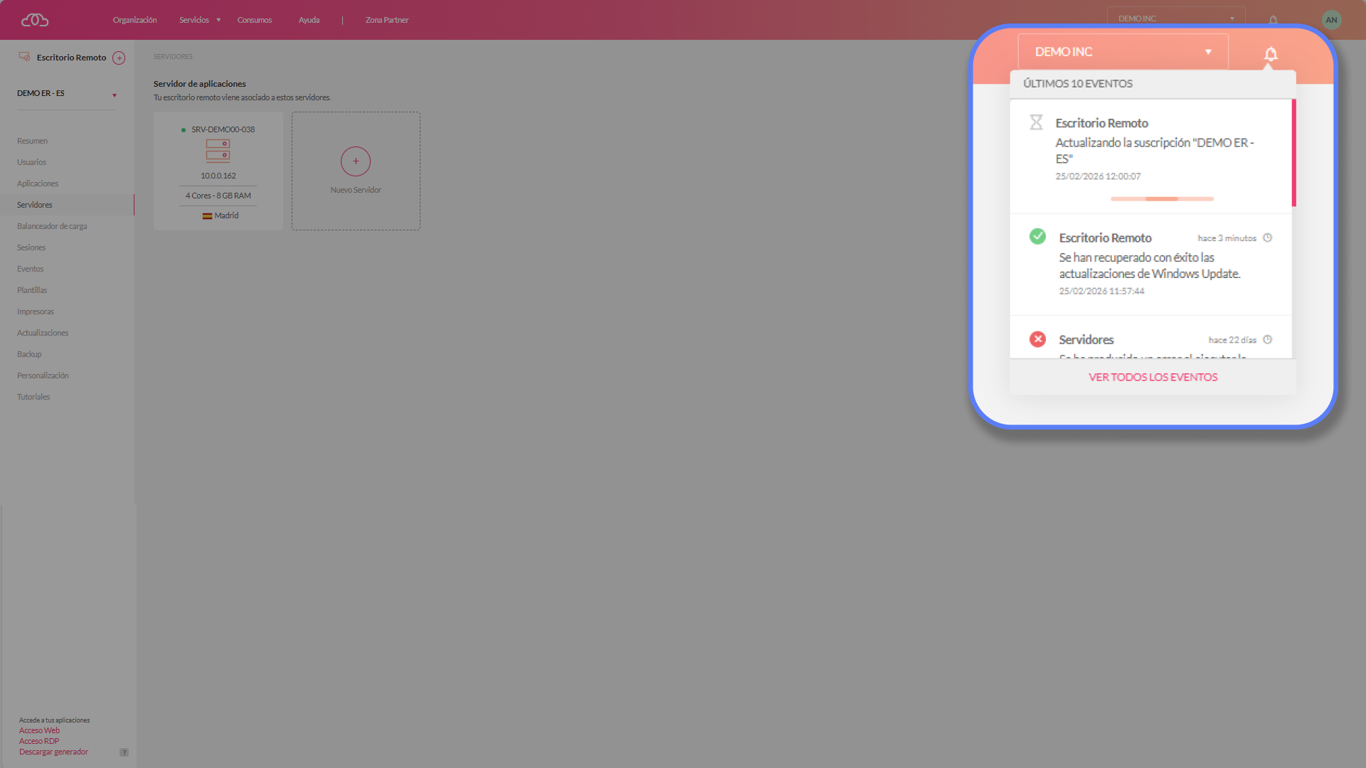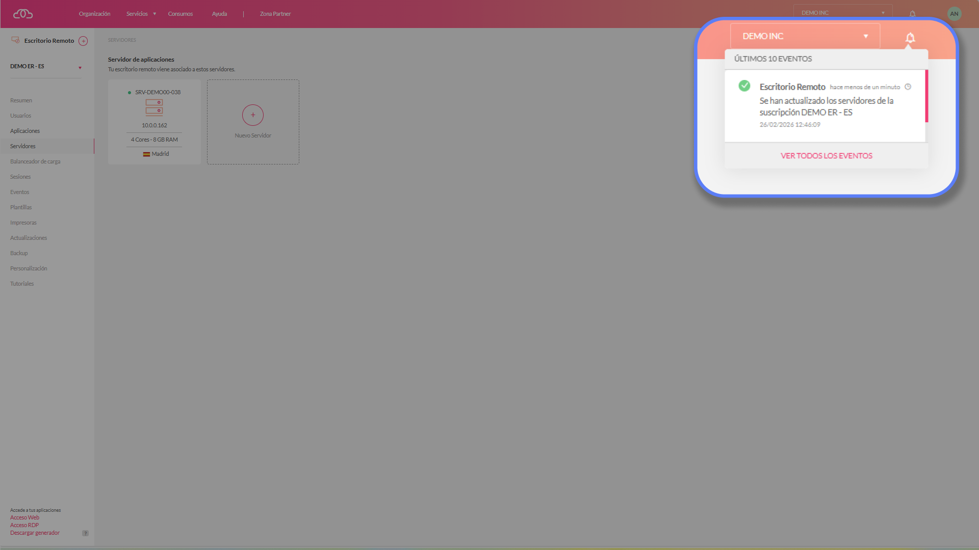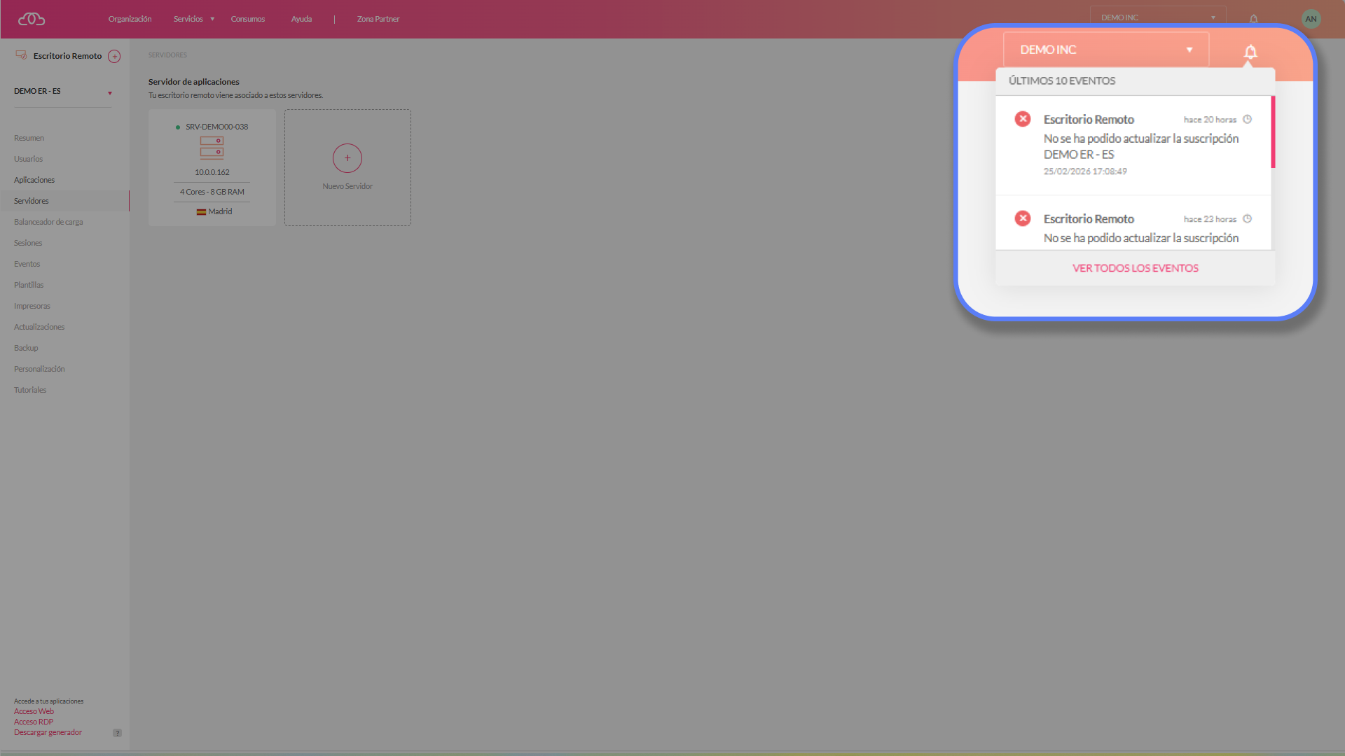 Zona Partner → Suscripciones → Escritorio Remoto